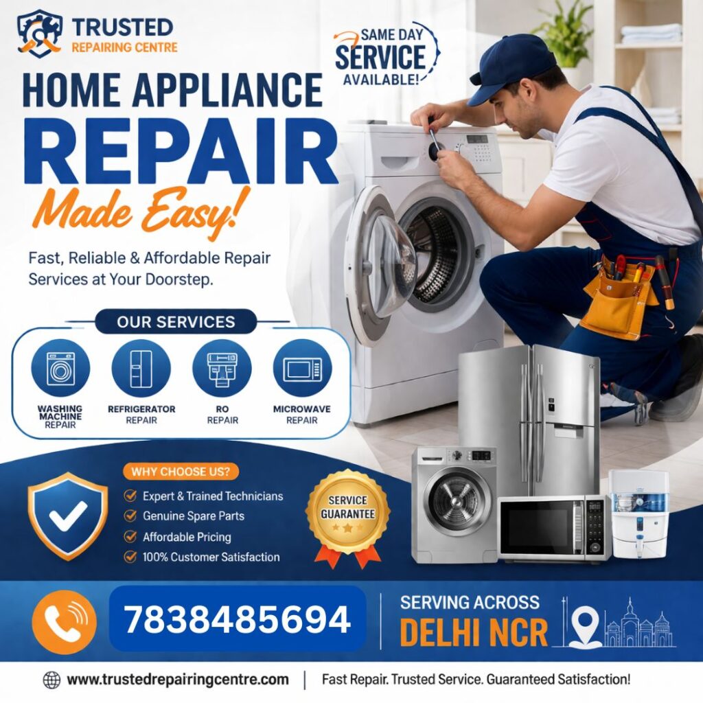 At Trusted Repairing Centre, we are very much aware of the fact that home appliances play an integral part in your day-to-day life. As one of the best service providers for refrigerator repair service in Delhi and washing machine repair services in Delhi, we are here to bring back the efficiency of your appliances through the most dependable and professional solutions.